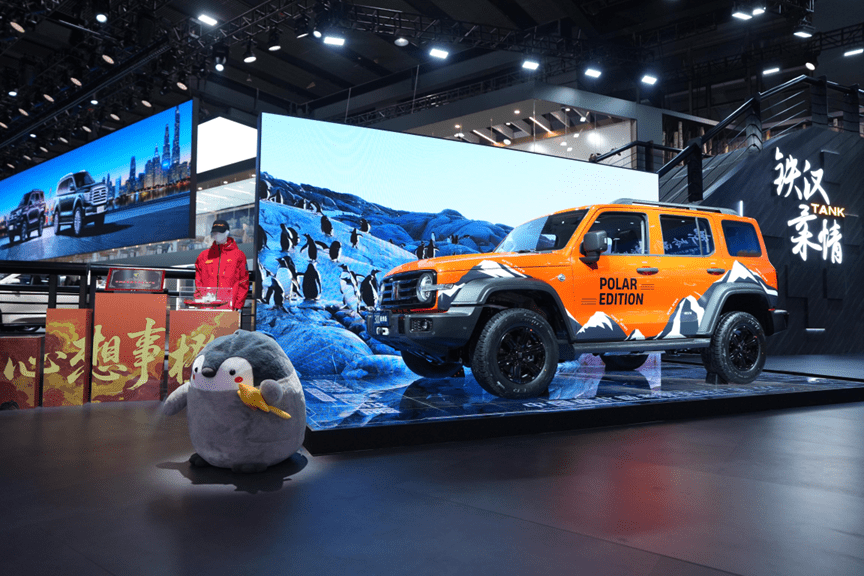 行动坦克300的又一款生息版块,坦克300极地版是坦克品牌与用户多维共创的全新恶果,从 “极地橙” 车身配色(海外营救安全色,冰雪中辨识度拉满)到专属拉花与徽章(以两极山脉为灵感),再到头枕烫印的南极疆土 + 长城站坐标,每一处细节齐来自全民投票共创,防泼水座椅与橙色缝线的搭配,更让实用性与视觉呼应完整和会。